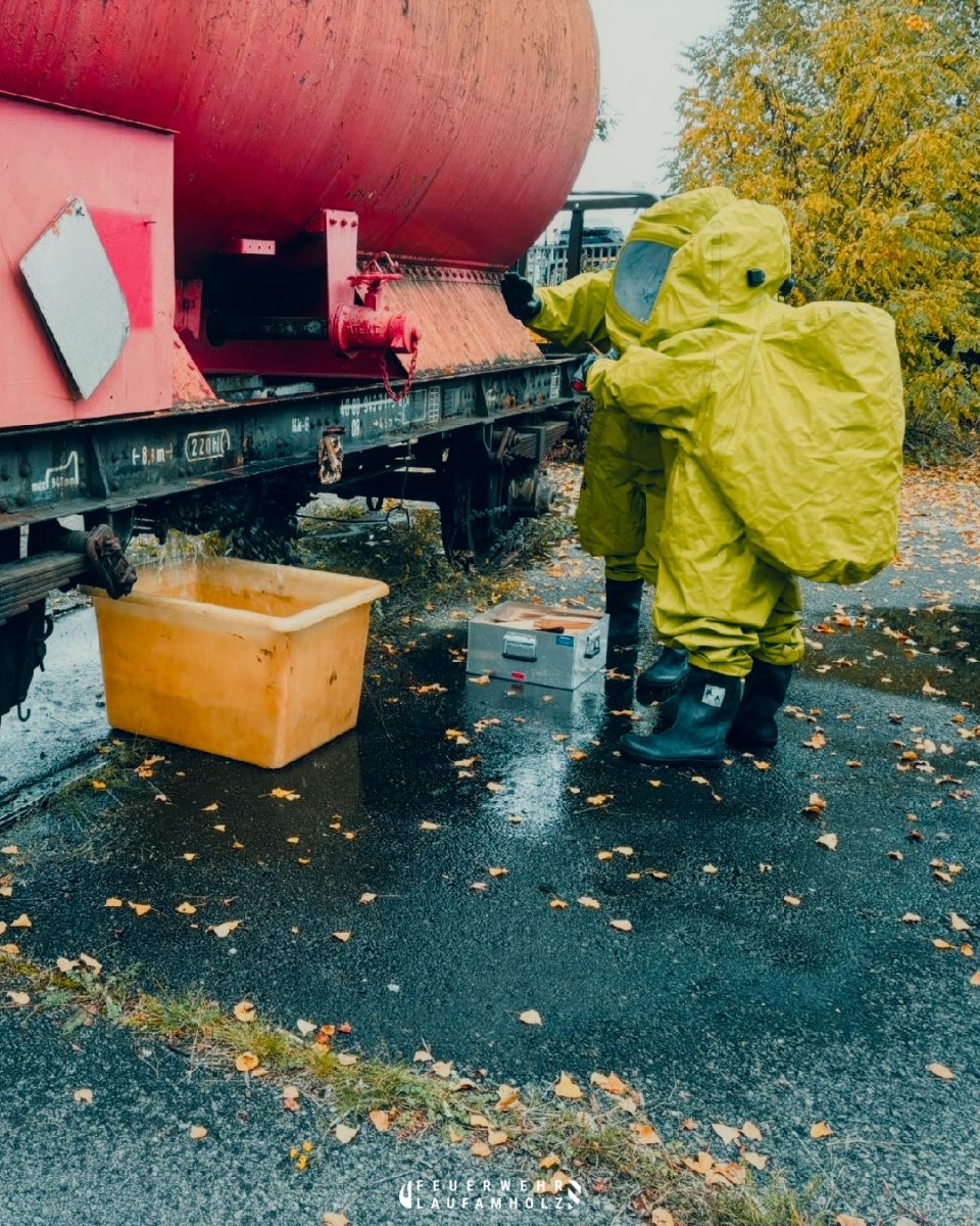 Übungsobjekt war ein Kesselwagen der Deutschen Bahn, an dem ein Gefahrgutszenario simuliert wurde.