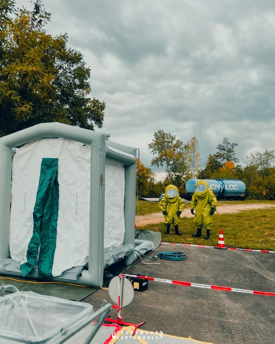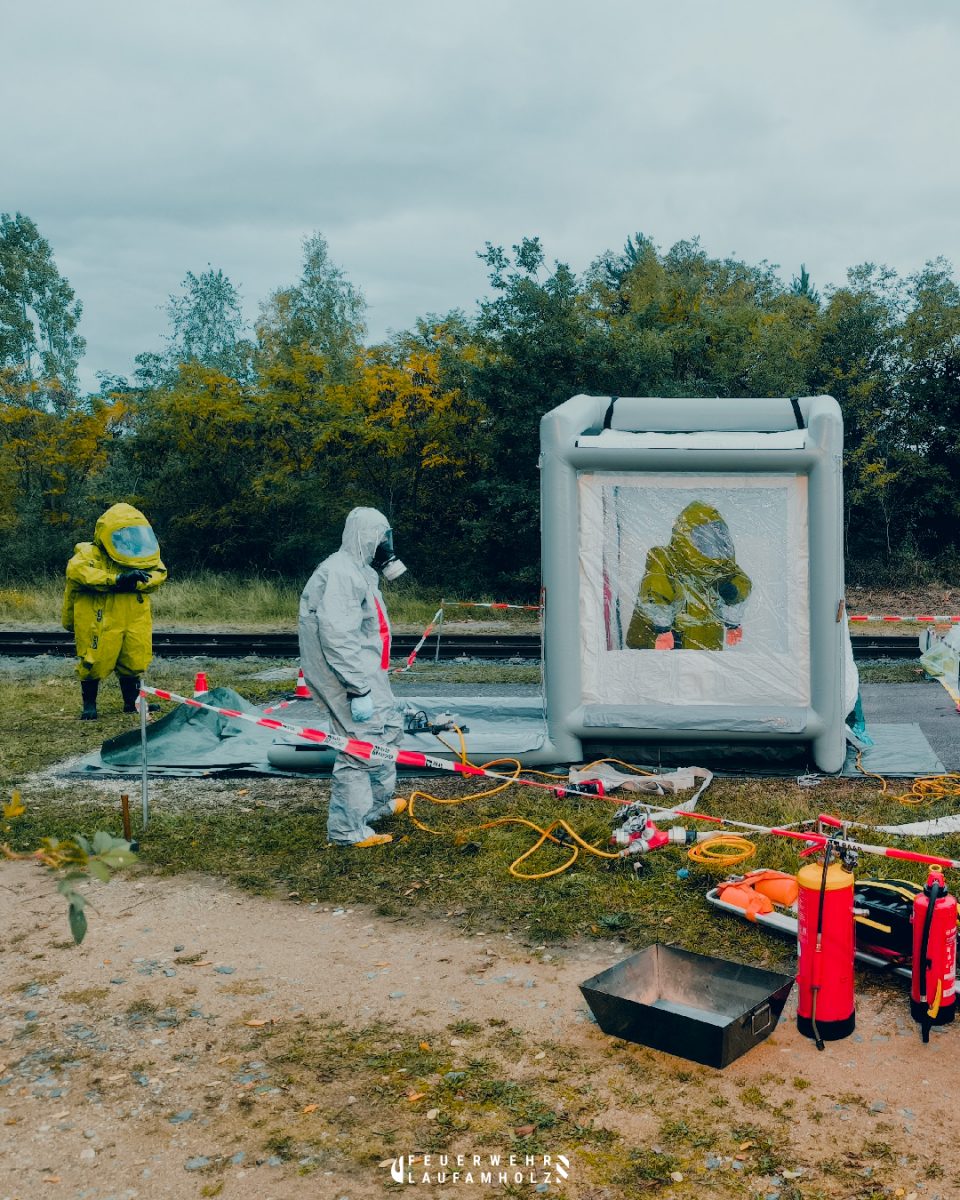Ziel war es, die Abläufe bei der Dekontamination nach einem Gefahrguteinsatz realitätsnah zu üben und die Zusammenarbeit zwischen den beteiligten Einheiten zu festigen.